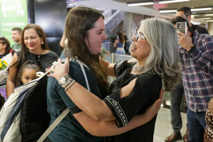 Abraços apertados, cartazes, flores e até cestas de chocolates marcaram o reencontro do lado de fora da área internacional do Aeroporto Internacional de Brasília — Presidente Juscelino Kubitschek. Letícia Carvalho, de 17 anos, foi uma das primeiras a surgir no saguão do desembarque. Ela é uma das participantes do Pontes para o Mundo, um programa de intercâmbio do Governo do Distrito Federal (GDF) que levou 102 estudantes da rede pública para uma imersão de 17 semanas no Reino Unido.