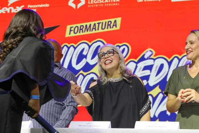 A secretária de Educação do Distrito Federal, Hélvia Paranaguá, destacou a importância da família e da atuação conjunta entre instituições públicas e privadas durante a formatura do Programa Técnico no Ensino Médio, realizada neste domingo (22). A cerimônia celebrou quase 1.500 estudantes da rede pública formados em parceria com o Serviço Nacional de Aprendizagem Comercial do Distrito Federal (Senac-DF).