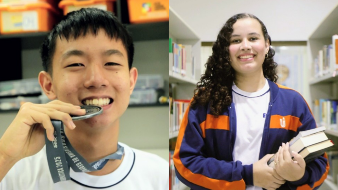 Alunos do 9º ano, Eloah e Pedro mostram que o caminho para a conquista de medalhas em olimpíadas de conhecimento deve ser pavimentado com disciplina, incentivo pedagógico e amizade